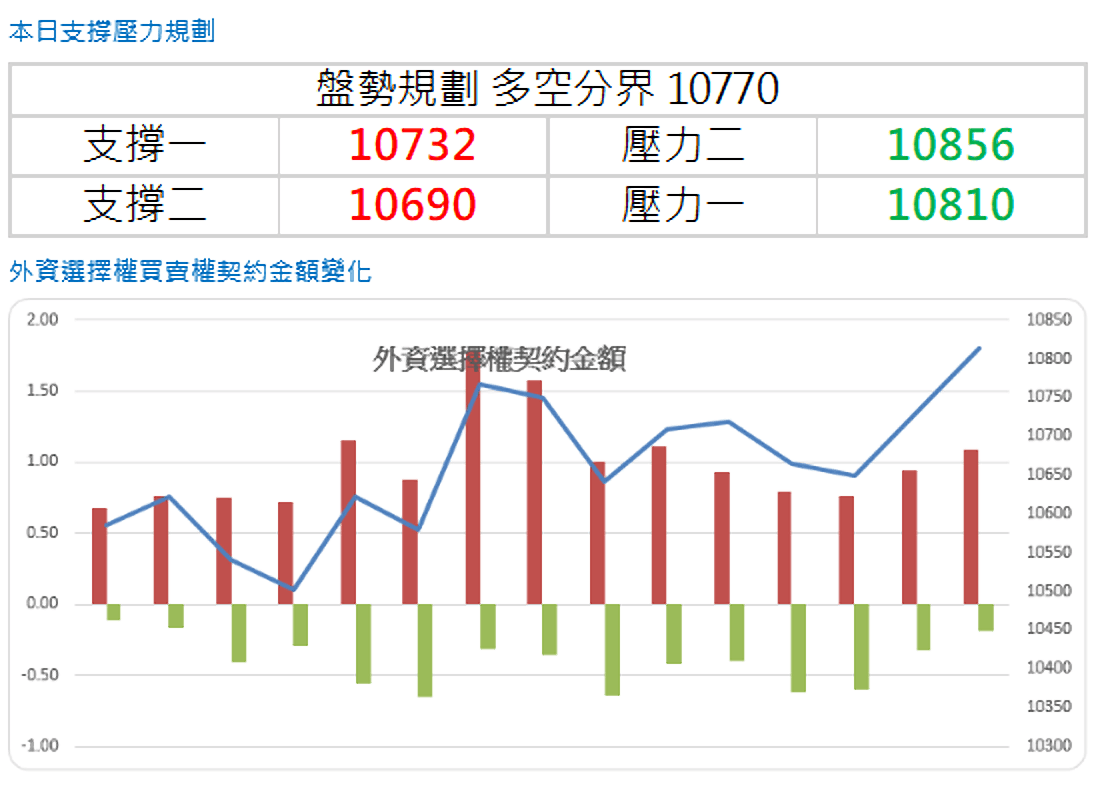 盤後籌碼看到外資現貨買超,買超金額48.58億元,買超金額第一名是台積電,符合我這兩天提到的外資的認錯行情,中間比較有趣的是一檔股票,下跌但是外資買超,這個情況過去分享過,也是我自己會去特別關注的標的,提供大家參考。期權部分,兩大法人多空單都增加,開始進入換倉的操作,這邊也可以從外資在選擇權契約金額圖上觀察到,過去一個月外資的避險操作,似乎看到改變,台股會在七月合約再開始一波多方攻擊嗎?我們靜觀其變。