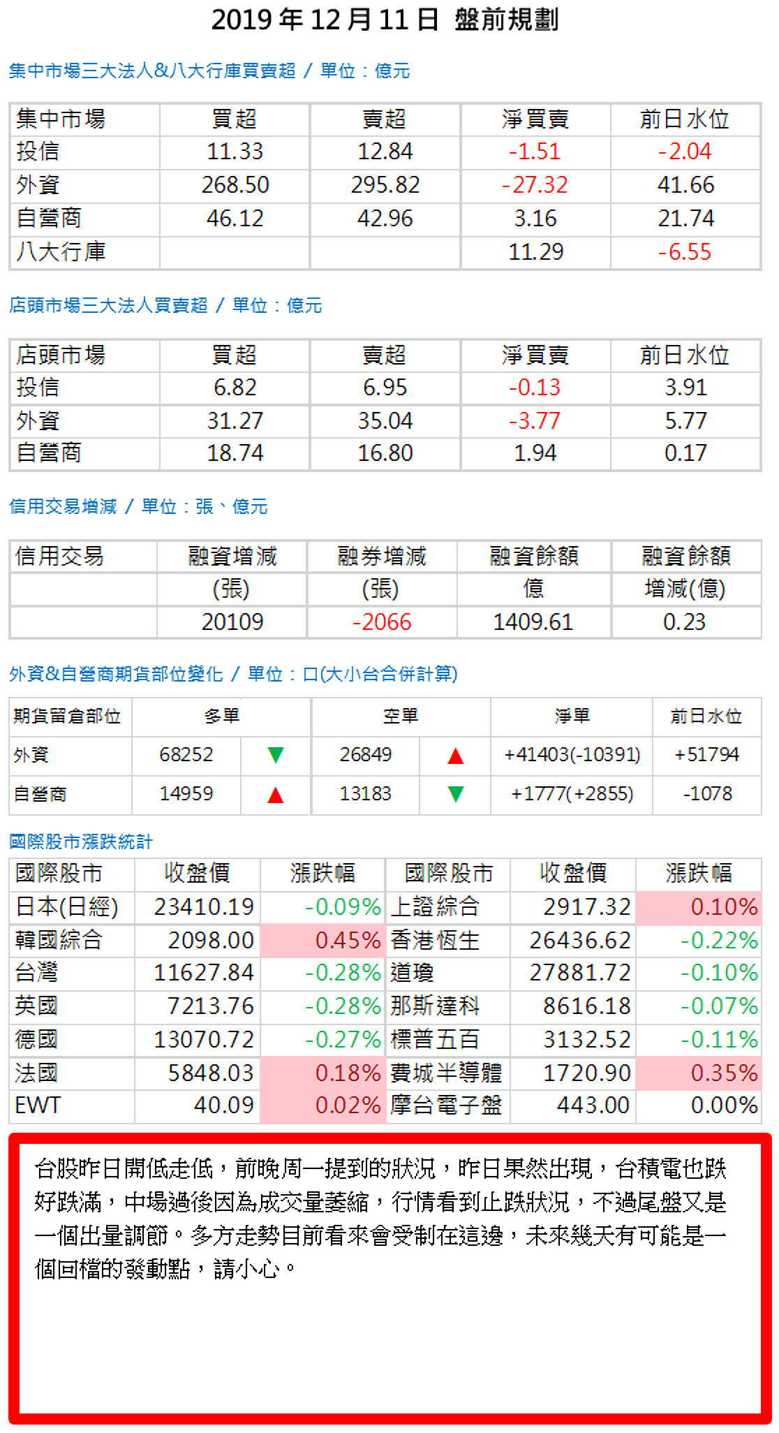 昨日外資除了期貨多減空增,淨多單大幅減碼外,現貨也出現結束連三買後的第一天賣超,賣超排行榜第一名就是台積電。台積電昨日盤後公布財報,美股ADR反應出來的走勢是開高走低,今天請注意台積電在台股的走勢,如果能夠守穩昨天平盤台股多方就還有一些機會。