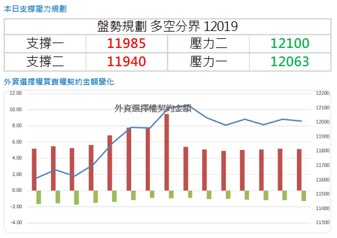 昨日台積電ADR上漲,台股則是平盤表現,請留意今天台積電開盤情況,如果跳空開高今天操作難度就相對增加。今天支撐壓力表做了一些調整,多空分界和壓力一都往上移動一些,把上面的鐵板移開,今天看看能否有好的表現。