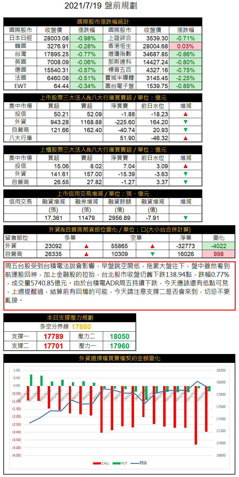盤後籌碼外資轉買為賣,賣超225億元,今日現貨開盤後注意回檔可能,期貨部分,外資空單增加5074口,近期增加最多的一天,不要太過輕視這個力道。