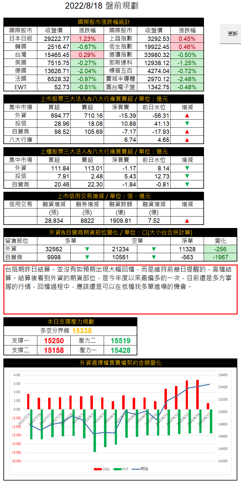台股昨日上漲44.88點,盤後看到外資賣超,加上國際行情回檔,今天台股下跌機率高,不過今日九月期貨合約轉成近月合約,開盤就有一個跳空缺口出現,今日操作難度加高,操作上建議觀察支撐一附近能否有效出現反彈,可以考慮切入多單。