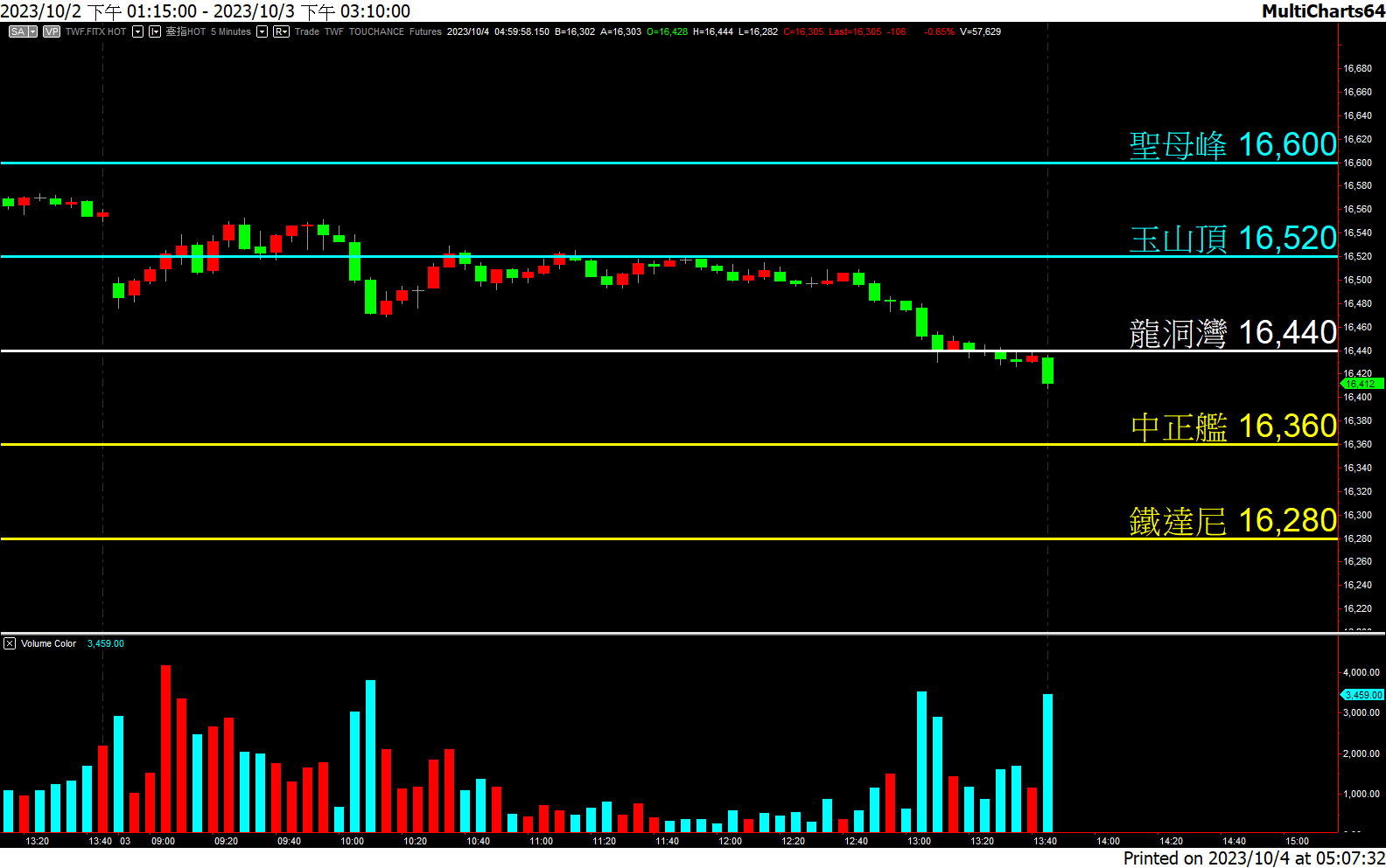 結算日,台指期跌破支撐二後,可以考慮BC16300樂透。