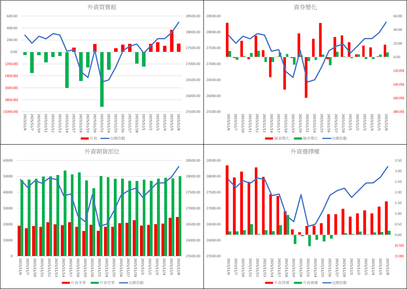 –外資日盤期現貨同步偏多,現貨連五買 +140.88億元,期貨 +1047口。