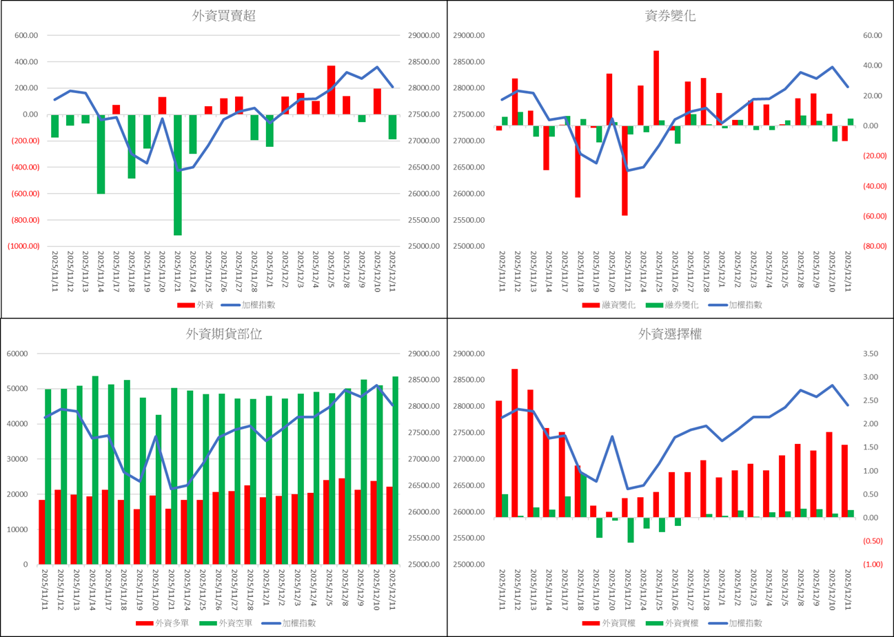 –外資日盤期現貨同步偏空,現貨賣超 189.77億元,期貨 +4938口。