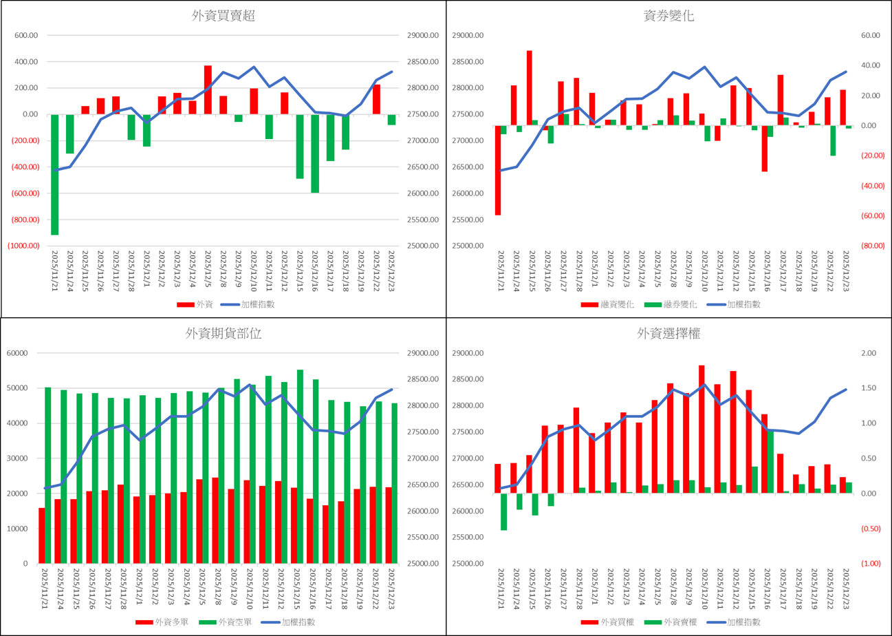 –外資期貨日夜盤同步偏多,日盤 +754口,夜盤 +1184口。