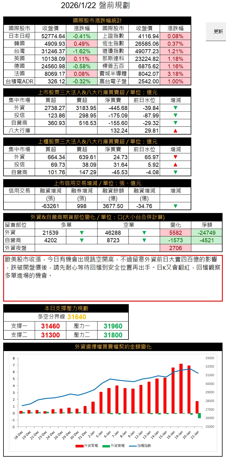 –外資夜盤期貨偏多操作,+1938口。新倉淨空單水位偏低。